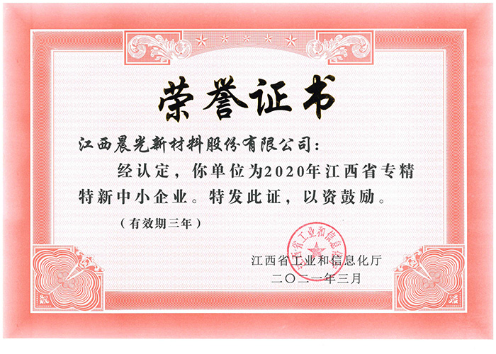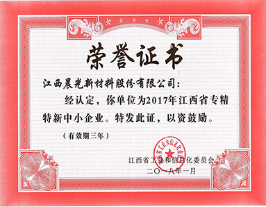 江西省工業(yè)和信息化委員會授予“2017年江西省專精特新中小企業(yè)”榮譽