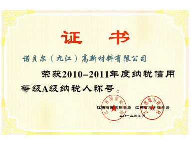 榮獲“2010-2011年度納稅信用等級A級納稅人”榮譽