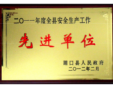 湖口縣人民政府授予“2011年度全縣安全生產(chǎn)工作先進單位”榮譽