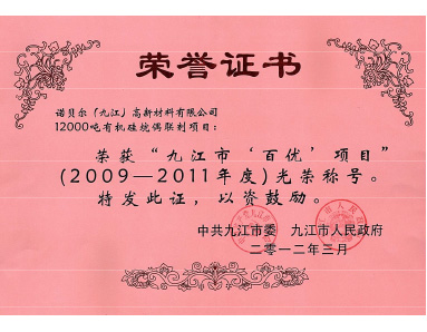 中共九江市委、九江市人民政府聯(lián)合授予“2009-2011年度九江市百優(yōu)項目”榮譽