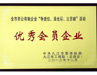 中共九江市委統(tǒng)戰(zhàn)部、九江市工商聯(lián)(總商會)聯(lián)合授予“優(yōu)秀會員企業(yè)”榮譽