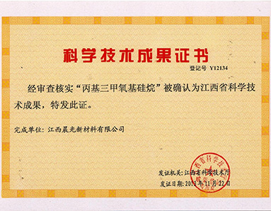 “丙基三甲氧基硅烷”被江西省科學技術(shù)廳授予“江西省科學技術(shù)成果”榮譽