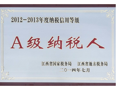 榮獲“2012-2013年度納稅信用等級A級納稅人”榮譽