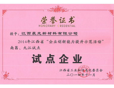 江西省工業(yè)和信息化委員會授予“創(chuàng)新能力提升示范活動試點企業(yè)”榮譽