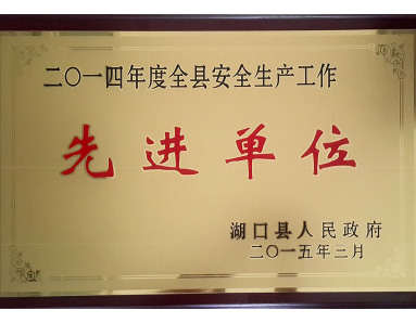 湖口縣人民政府授予“2014年度全縣安全生產(chǎn)工作先進單位”榮譽