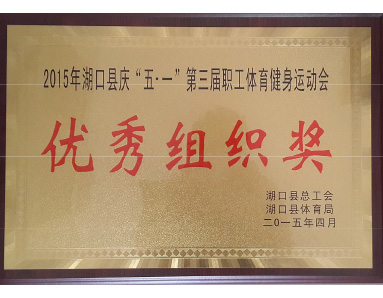湖口縣總工會、湖口縣體育局聯(lián)合授予“2015年湖口縣慶五一第三屆職工體育健身運動會優(yōu)秀組織獎”榮譽