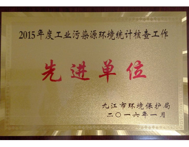 九江市環(huán)境保護局授予“2015年度工業(yè)污染源環(huán)境統(tǒng)計核查工作先進單位”榮譽