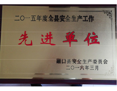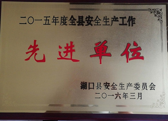 湖口縣安全生產(chǎn)委員會授予“2015年度全縣安全生產(chǎn)工作先進單位”榮譽