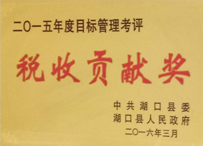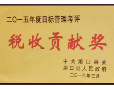 中共湖口縣委、湖口縣人民政府聯(lián)合授予“2015年度目標管理考評稅收貢獻獎”榮譽