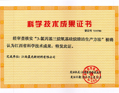 “3-氯丙基三烷氧基硅烷清潔生產(chǎn)方法”被江西省科學技術(shù)廳授予“江西省科學技術(shù)成果”榮譽