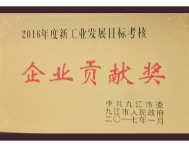 中共九江市委、九江市人民政府聯(lián)合授予“2016年度新工業(yè)發(fā)展目標考核企業(yè)貢獻獎”榮譽