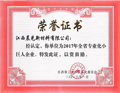江西省工業(yè)和信息化委員會授予“2017年江西省專業(yè)化小巨人企業(yè)”榮譽
