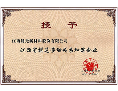 江西省人民政府授予“江西省模范勞動關(guān)系和諧企業(yè)”榮譽