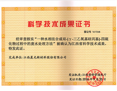 “一種水相法合成雙-[γ-三乙氧基硅丙基]-四硫化物過程中的廢水處理方法”被江西省科學技術(shù)廳授予“江西省科學技術(shù)成果”榮譽