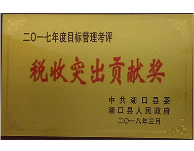 中共湖口縣委、湖口縣人民政府聯(lián)合授予“2017年度目標管理考評稅收突出貢獻獎”榮譽