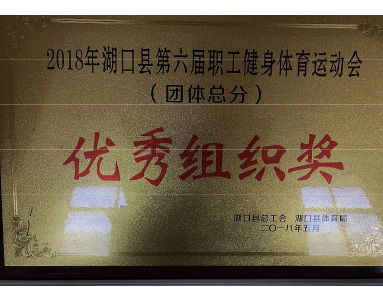 湖口縣總工會、湖口縣體育局聯(lián)合授予“2018年第六屆湖口縣職工健身體育運動會優(yōu)秀組織獎”榮譽