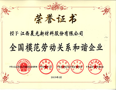 中華人民共和國人力資源和社會保障部、中華全國總工會、中國企業(yè)聯(lián)合會/中國企業(yè)家協(xié)會、中華全國工商業(yè)聯(lián)合會聯(lián)合授予“全國模范勞動關(guān)系和諧企業(yè)”榮譽