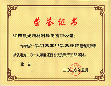 3-氯丙基三甲氧基硅烷產(chǎn)品被江西省工業(yè)信息化廳授予“江西省2019年新產(chǎn)品三等獎”榮譽