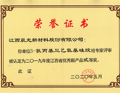 3-氨丙基三乙氧基硅烷產(chǎn)品被江西省工業(yè)信息化廳授予“江西省2019年新產(chǎn)品二等獎”榮譽